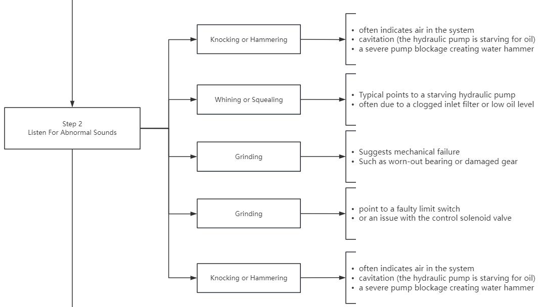 - Unusual whining or cavitation noises from the hydraulic pump.